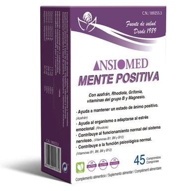 Ansiomed es una marca comprometida con el bienestar emocional. Nuestros productos están formulados a base de productos naturales como el Triptófano, el Azafrán, o la Rhodiola, así como por vitaminas y minerales, que ayudan a mantener un estado de ánimo positivo y a adaptarse al estrés emocional. Nuestra gama de productos ofrece una fórmula específica para cada necesidad, brindando soluciones naturales para el equilibrio emocional*.